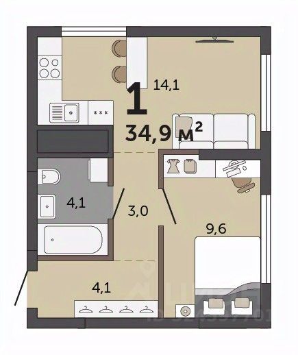 34,9 м²