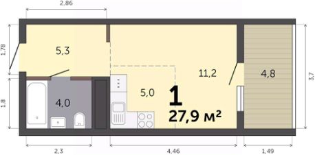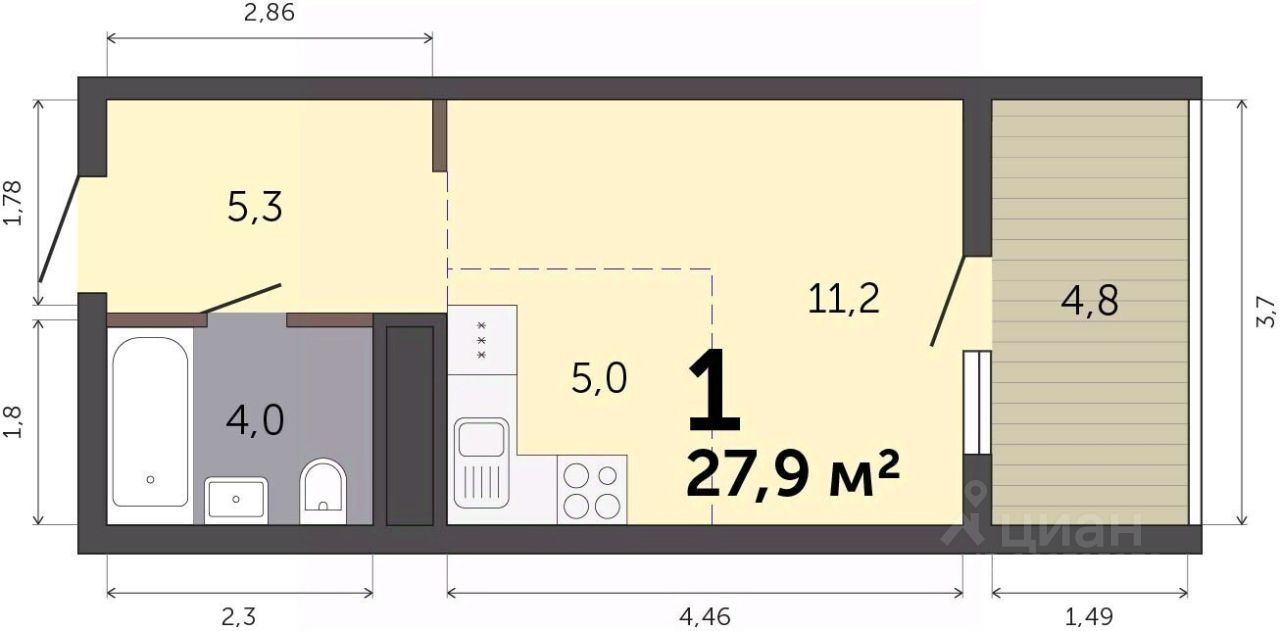 Продаётся студия в строящемся доме (Дом 6), срок сдачи: III-кв. 2027, общей площадью 27.9 кв.м., на 5 этаже. Расположение, транспортная доступность
