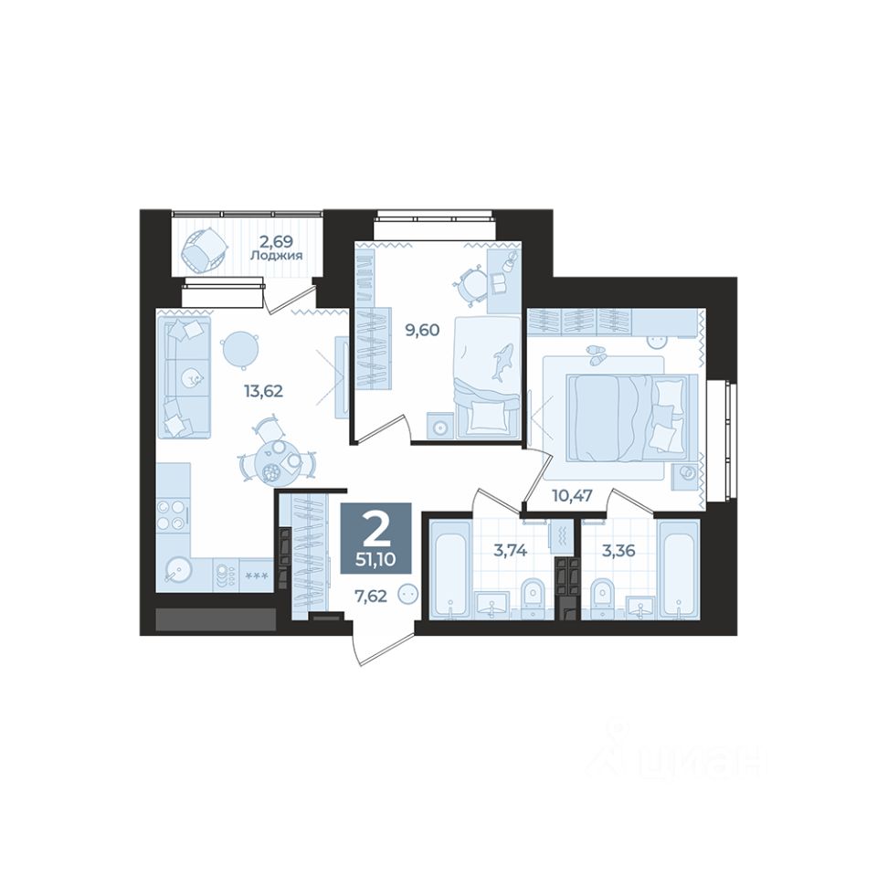 Разнообразные планировочные решения: от квартир с одной спальней для молодых пар до вариантов с тремя спальнями для семей с несколькими детьми. Для тех, кто хочет сделать дизайн-проект самостоятельно, мы предлагаем квартиры в предчистовом варианте, также можно заказать чистовую отделку.