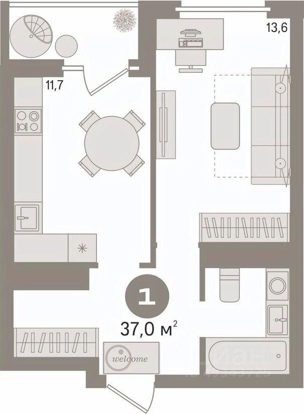 В продаже однокомнатная квартира площадью 37,00 кв.м. в ЖК "Квартал Спутник-1" по адресу: г. Екатеринбург, ул. Академика Ландау, д. 39а, расположенная на пятом этаже.