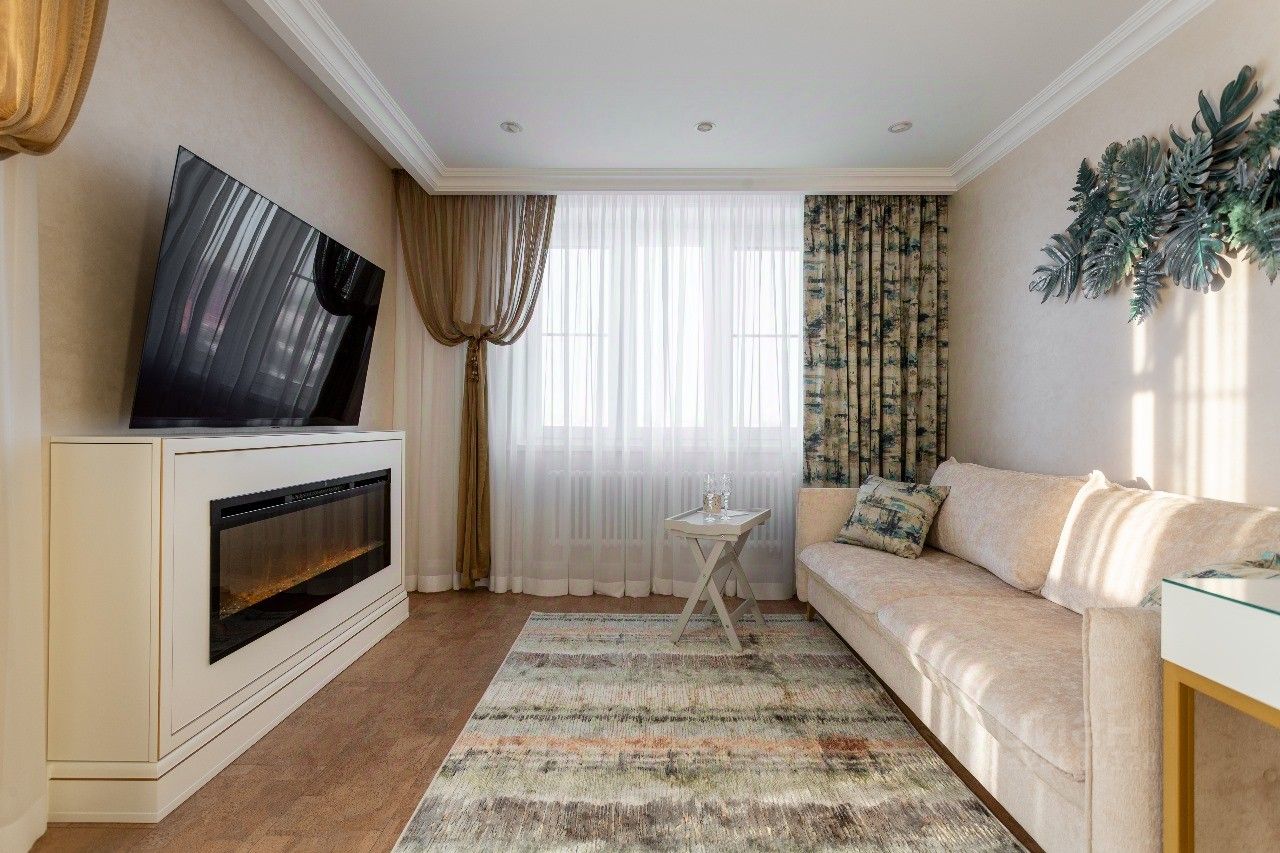 Вашему вниманию предлагается полностью готовая к проживанию шикарная двухкомнатная квартира с панорамными видами на город! В квартире выполнен дизайнерский ремонт из высококачественных материалов: напольное покрытие - пробка и керамогранит, под керамогранитом смонтирован теплый пол, стены - декоративная штукатурка, межкомнатные двери выполнены под заказ, полностью заменены все радиаторы, проводка, сантехническое оборудование. Вся встроенная мебель изготовлена по индивидуальному проекту. С 18 этажа открывается шикарный вид на город. В шаговой доступности детский сад, школы, торговые центы (ОМЕГА, Веер Мол), до метро (станция проспект Космонавтов) 5-7 минут пешком. Благодаря удачной планировке и не маленькой площади, данную квартиру можно легко переоборудовать в трех комнатную, с полноценной спальней, детской и кухней гостиной (данный пример показан на крайнем фото). В квартире остается все встроенная оргтехника (холодильник_Samsung, посудомойка_Bosch, духовой шкаф_Bosch, варочная поверхность_Electrolux, микроволновка_Electrolux, стиральная машина_Electrolux, камин в гостиной), часть мебели и декора. Есть возможность приобрести паркинг с вместительным шкафом для хранения колес, лыж и другой мелочи, за отдельную стоимость. Документы готовы, обременений нет, ключи в день сделки, звоните, записывайтесь на просмотр!
