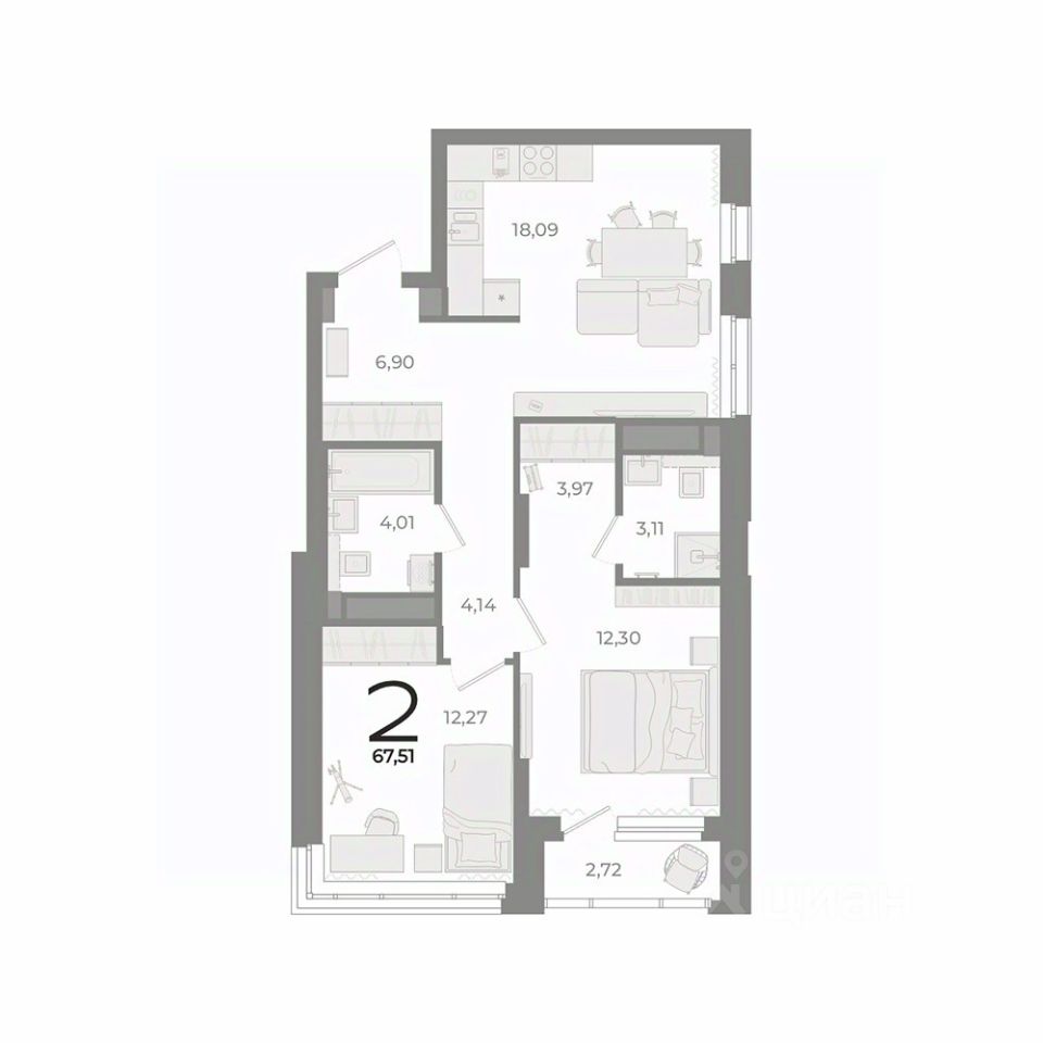 Общая площадь67,51 м²