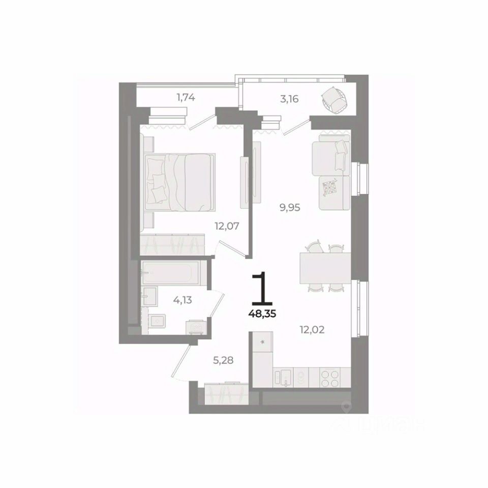 Общая площадь48,35 м²