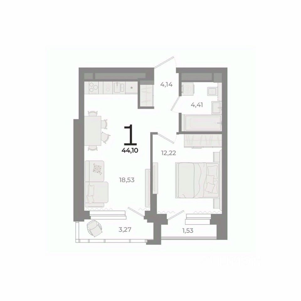 Общая площадь44,1 м²