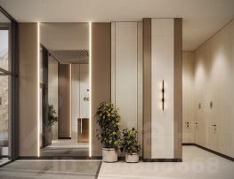 Внутренний двор атмосферное пространство со строгими очертаниями и лаконичными формами. Пространство зонировано: фонтан, зона для пикника, амфитеатр, лаунж-зона с гамаками и лежаками, детские площадки для всех возрастов, пространства с навесами для родителей, зона воркаут со столом для настольного тенниса, велопарковка. Тихие уголки отделены от территории для активностей зелеными ширмами. Жители дополнительно смогут отдохнуть на общей открытой террасе на высоте
