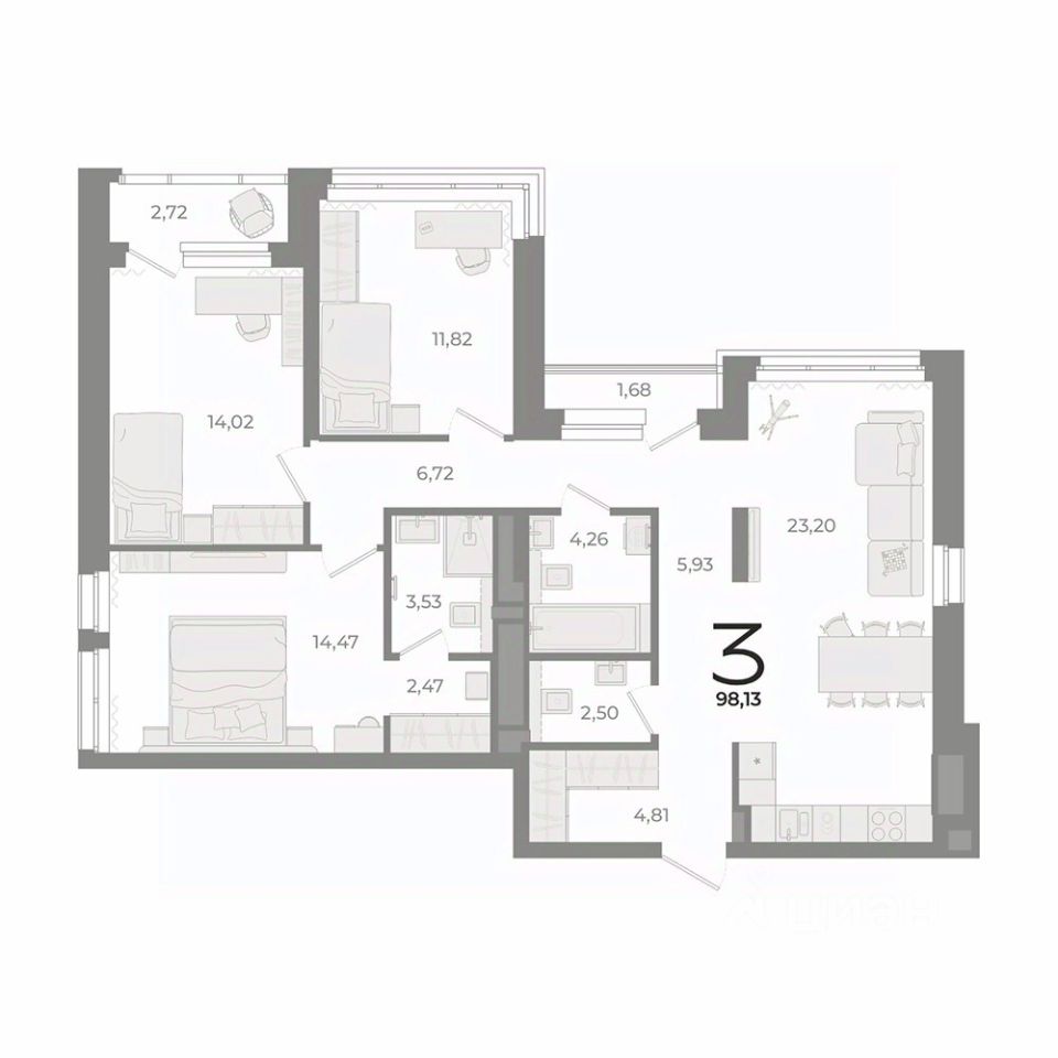 Общая площадь98,13 м²