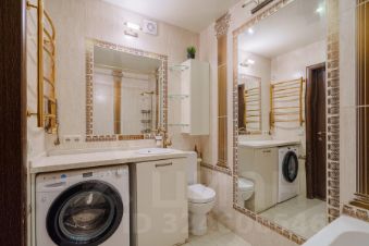 С/у совмещенный с вмонтированными в стены зеркалами, с удобной ванной и широкой столешней из камня. Качественная сантехника. Пол с подогревом. Стиральная машина остается новым владельцам.