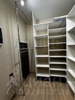 Отдельная гардеробная комната со встроенной системой хранения вещей.