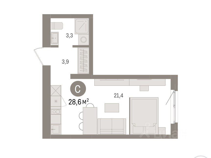 В продаже квартира-студя в жилом комплексе комфорт-класса в Юго-Западном районе Екатеринбурга. Проект включает квартальную застройку с домами переменной этажности, урбан-виллы и приватные зелёные дворы без машин.