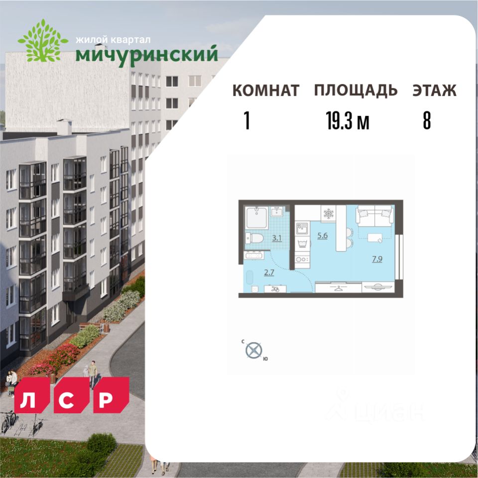 Квартира располагается на 8 этаже 8-этажного дома в ЖК Мичуринский.