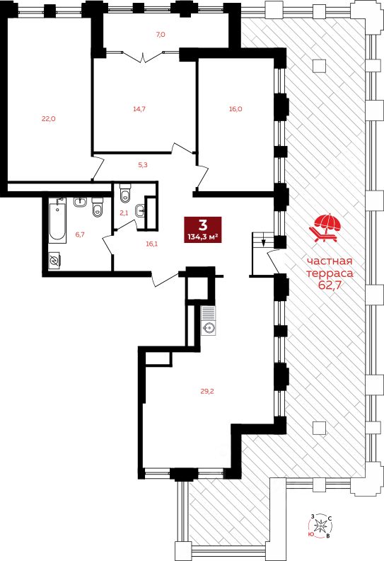Продается Трёхкомнатная квартира в уникальном жилом квартале повышенной комфортности, который станет знаковым архитектурным объектом для Екатеринбурга. Квартира находится на 26 этаже, площадью 134.3кв.м. Срок сдачи: 2 квартал 2026 года. Подробнее о жилом комплексе: Жилой квартал "Федерация" расположен в границах ул. Степана Разина Щорса Чапаева в г. Екатеринбурге, в районе с развитой транспортной и социальной инфраструктурой, в шаге от ТРЦ "Мегаполис" и станции метро "Чкаловская". От комплекса легко добраться до центра Екатеринбурга и в другие районы города, а также выехать на ЕКАД. Комплекс представляет собой многосекционный жилой дом переменной этажности с 30-этажной центральной секцией со шпилем. Благодаря своей высотности и впечатляющей архитектуре, выдержанной в стиле московских "сталинских" высоток, Квартал "Федерация" станет архитектурной доминантой района и знаковым объектом Екатеринбурга. Секции дома имеют замкнутый периметр и образуют приватный, свободный от машин двор-сад площадью почти один гектар, открытый солнцу за счет понижения южной части застройки до 7 этажей. На площади перед комплексом формируется общественный сквер с фонтаном. На первых этажах размещаются объекты инфраструктуры - магазины, кафе, и т.п., а также детское образовательное учреждение, оператором которого выбрана Международная сеть детских образовательных центров "Согласие" - открытие частного детского сада и начальной школы запланировано на 01 сентября 2024 г. Предусмотрен двухуровневый подземный паркинг с электрозарядными станциями и автосервисом (автомойка, шиномонтаж), все лифты в доме грузопассажирские, спускаются в паркинг. Во всех квартирах высокие потолки 2,9 м, увеличенные окна высотой 1,9 м, кухни-гостиные площадью до 30 м2. Строительство дома осуществляется поэтапно, сейчас в продаже осталась только завершающая (высотная) секция дома. В высотной секции предусмотрены: - единая рецепция с лобби на первом этаже - колясочные на типовых жилых этажах - просторные общественные панорамные террасы для отдыха на 18 этаже - отдельная группа из 2 лифтов для квартир верхних (18-28) этажей - квартиры с личными панорамными террасами на верхних этажах В доме представлены разнообразные планировки квартир от комфортных однокомнатных до роскошных пентхаусов, при этом преобладают "семейные" варианты квартир - с двумя или тремя спальнями, общей площадью 70-120 м2.