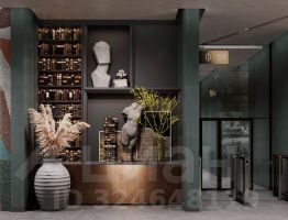 Интерьер вестибюля с кофейней, камином и панорамными видами выполнен в благородных приглушенных тонах с авторским панно из мозаики.