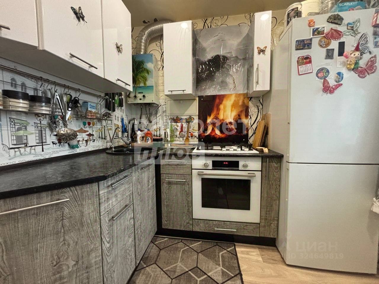 Одним из главных преимуществ этой квартиры является наличие встроенного кухонного гарнитура, который останется новым владельцам. В комплект также входит варочная поверхность.