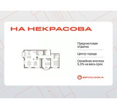 Квартира с кухней-гостиной и двумя спальнями в квартале "На Некрасова". Особенности планировки: предчистовая отделка, мастер-спальня.