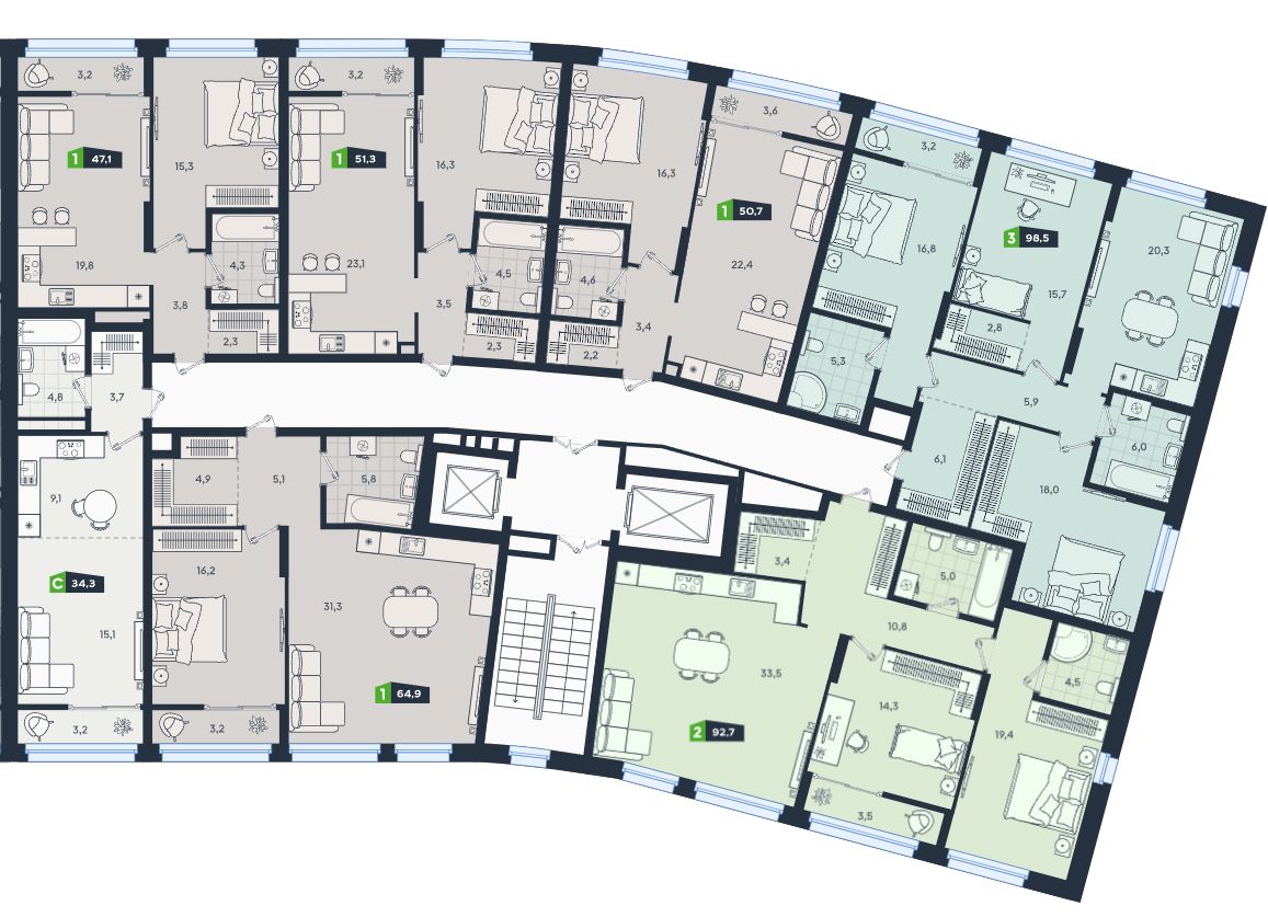 80 квартир в продаже · Сдача в 3 кв. 2027, есть сданные