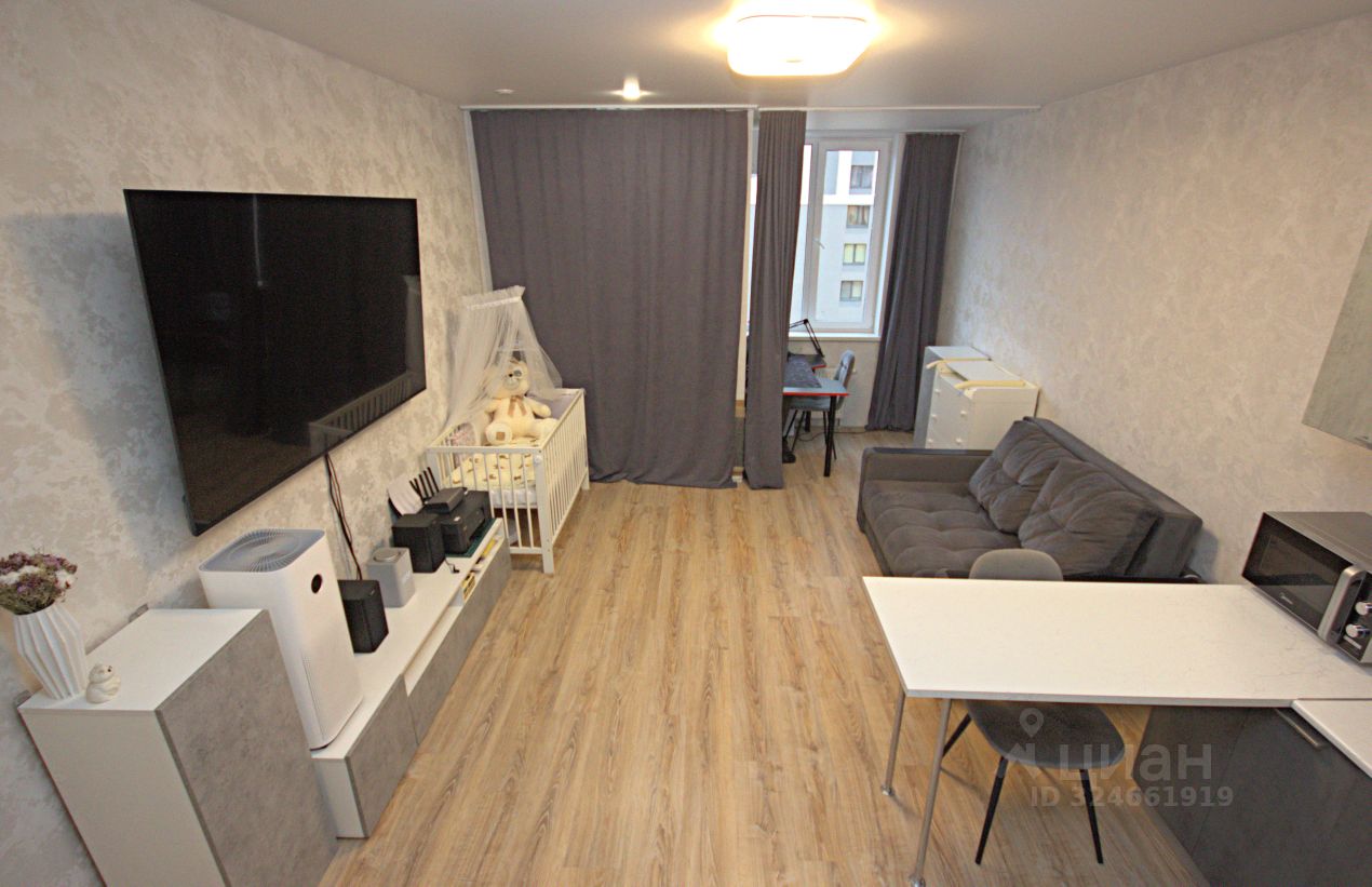 Просторная квартира-студия, с функциональной планировкой. Площадь помещений в квартире (м2): комната с кухонной зоной 29 м2; санузел 4,5 м2; лоджия 2 м2.