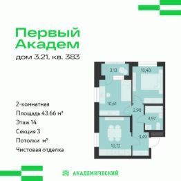 Продается 2-комнатная квартира площадью 43.66 кв.м. от девелопера "Академический" в жилом квартале "Первый Академ". Срок сдачи дома в 2028 году. Выгоды и скидка напрямую от застройщика.