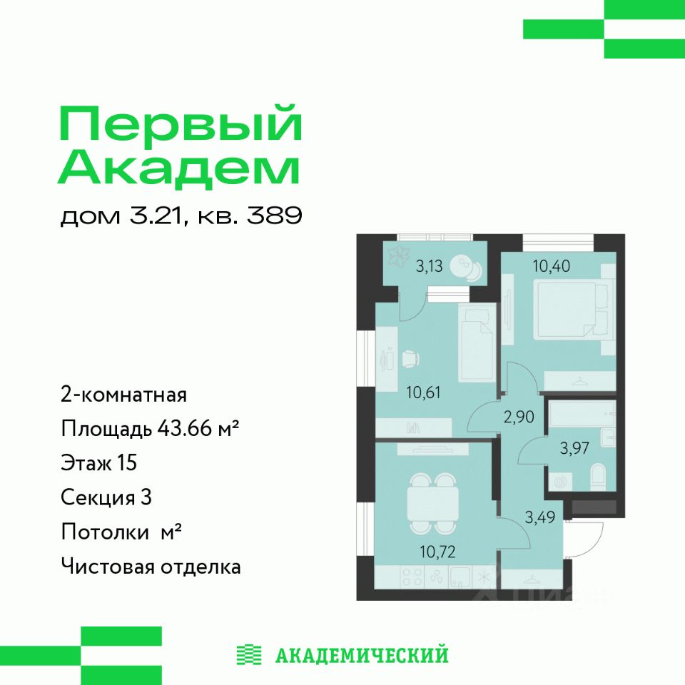 Продается 2-комнатная квартира площадью 43.66 кв.м. от девелопера "Академический" в жилом квартале "Первый Академ". Срок сдачи дома в 2028 году. Выгоды и скидка напрямую от застройщика.