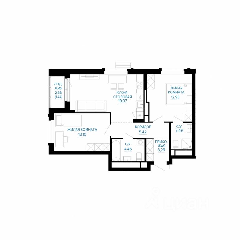 Продаётся 2-комнатная квартира в строящемся доме (Секция 2), срок сдачи: IV-кв. 2025, общей площадью 63.2 кв.м., на 10 этаже. Доминанта - новый проект девелопера Forum в северной части Екатеринбурга.