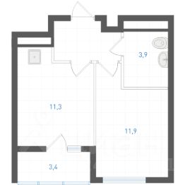 Внутри просторные комната и кухня-гостиная, в прихожей предусмотрена ниша для шкафа-купе.