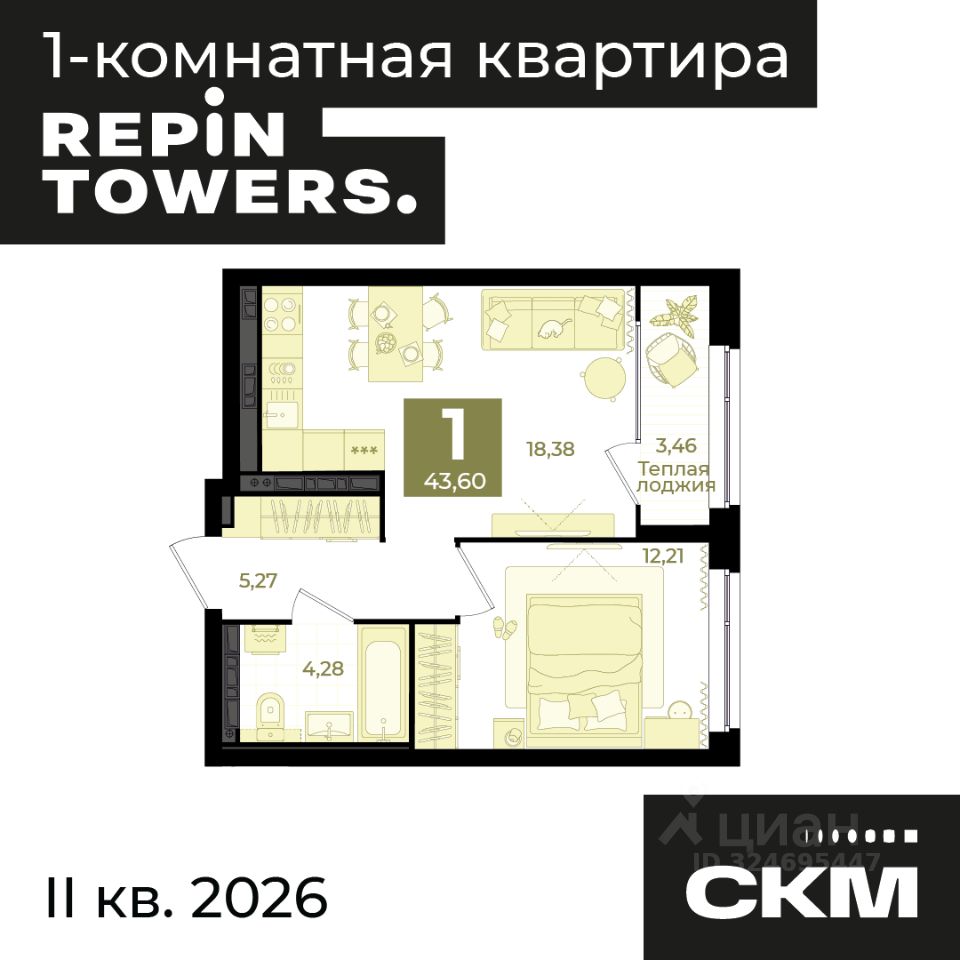 Дом 2 Ввод в эксплуатацию первая половина 2026 г. (возможен досрочный ввод). Класс дома: комфорт. Отделка: чистовая. Архитектурное решение: графитовые композитные панели в сочетании со светлой штукатуркой. Вид из окон: на Верх-Исетский пруд, центр города и лесной массив. ЖК Repin Towers три башни разной этажности объединённые общим двором. Комплекс расположен на пересечение улиц Репина Заводская. На территории запроектирован детский сад, до школы около 100 метров, пересекать проезжую часть не придется. В шаговой доступности находятся: школы ( 41, 57, 168, 121, Гимназия 202 "Менталитет") детские сады (7, 67, 348, 510) остановки общественного транспорта (ул. Репина, Начдива Васильева, Металлургов) торговые центры (Мега, Радуга-парк) парк отдыха Радуга набережная Верх-Исетского пруда с яхт-клубом "Коматек" Современная архитектура. Минимализм и круглые окна — особенность, выделяющая дом среди окружающей застройки. Двор без машин. Игровые площадки для детей разных возрастов, места отдыха и занятий спортом для взрослых не соседствуют с парковкой. Релакс-зона. Шезлонги и зонтики, поворотные кресла и паровой камин для спокойного отдыха. Парк во дворе. Многоуровневое озеленение и система туманообразования. Три уровня безопасности. Контроль доступа по карте жителя, эффективная система видеонаблюдения, консьерж-сервис. Дизайнерские холлы. Парадный холл с остеклением в пол, гостевыми санузлами и зонами ожидания. Технический холл. Для разгрузки строительных материалов, мебели и крупногабаритных вещей предусмотрен отдельный технический холл. В нем расположен грузовой лифт и санузел для мытья лап животным, а также колес велосипедов и колясок. Сервисная компания от застройщика. Обслуживанием дома будет заниматься профессиональная команда. Строительные и технические преимущества. Индивидуальный тепловой пункт: снижает затраты на отопление. Система очистки улучшит качество воды в доме. Пятикамерные окна задержат шумы и холод. Клапан вентиляции позволит проветрить комнату, не устраивая сквозняк. Горизонтальная разводка отопления: трубы спрятаны в полу. Счетчики с телеметрией. Отдельный счетчик на отопление у каждой квартиры. Отведение конденсата для кондиционеров. Высокий уровень шумоизоляции у стены квартир. Бесшумные, скоростные лифты. Реализация строящегося объекта осуществляется от застройщика по договору участия в долевом строительстве в соответствии с ФЗ-214 "Об участии в долевом строительстве", застройщик ООО "Специализированный Застройщик Репина". Варианты оплаты: ипотека, индивидуальные условия рассрочки, trade in, материнский и жилищные сертификаты, подробности в отделе продаж.