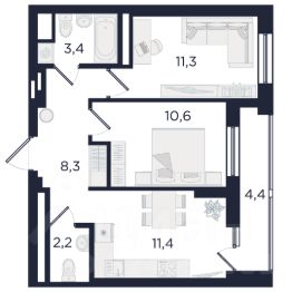 11,4 м²