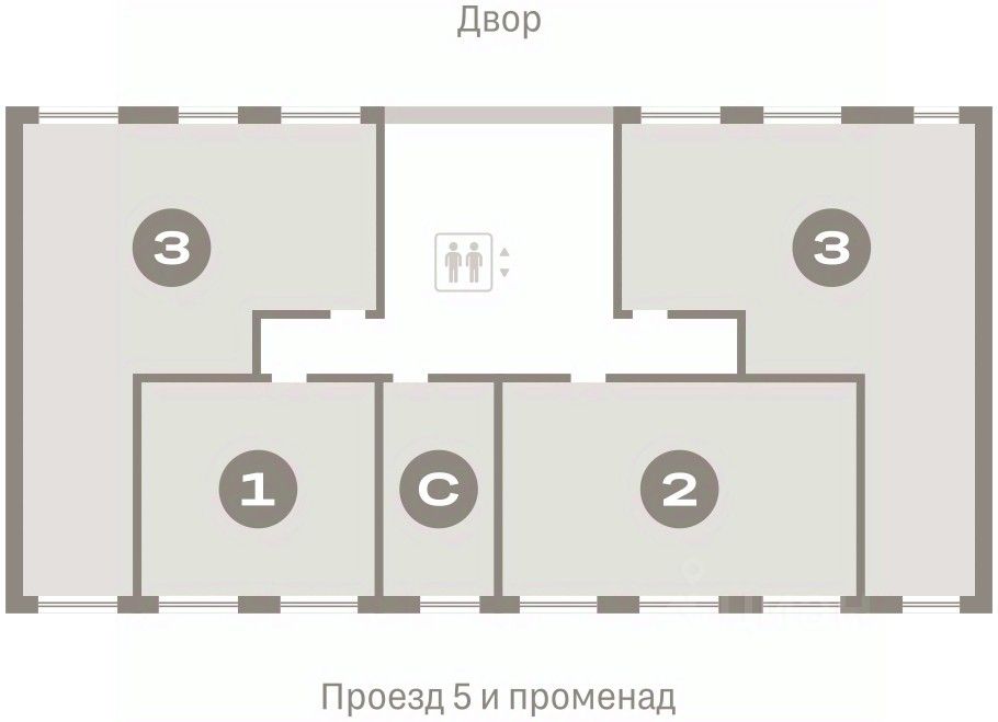 Квартира с кухней-гостиной и тремя спальнями в Бруснике в Академическом. Особенности планировки: балкон, вид во двор, второй санузел, гардеробная, мастер-спальня, постирочная, предчистовая отделка, разнесённые спальни.