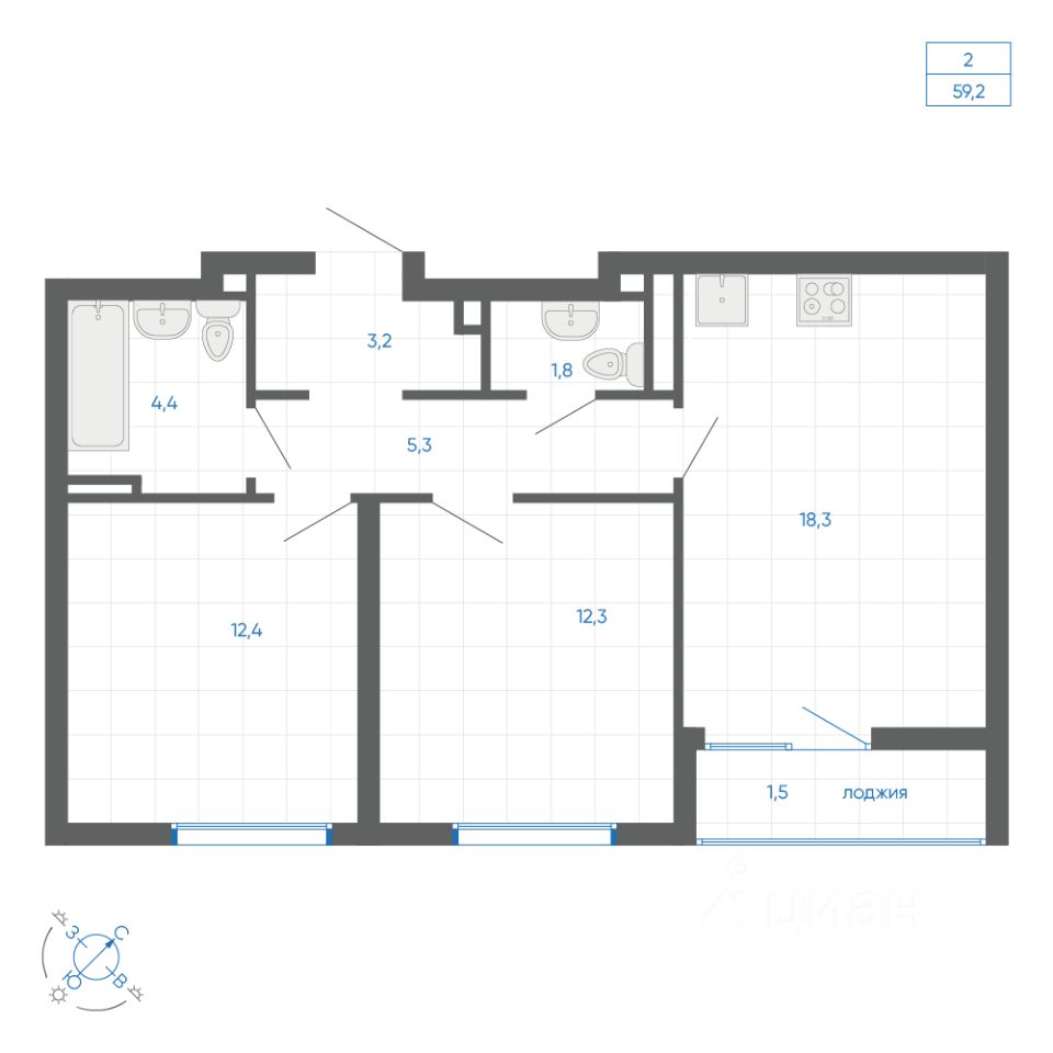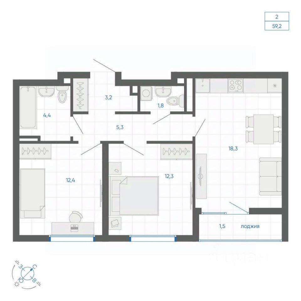 Общая площадь59,2 м²