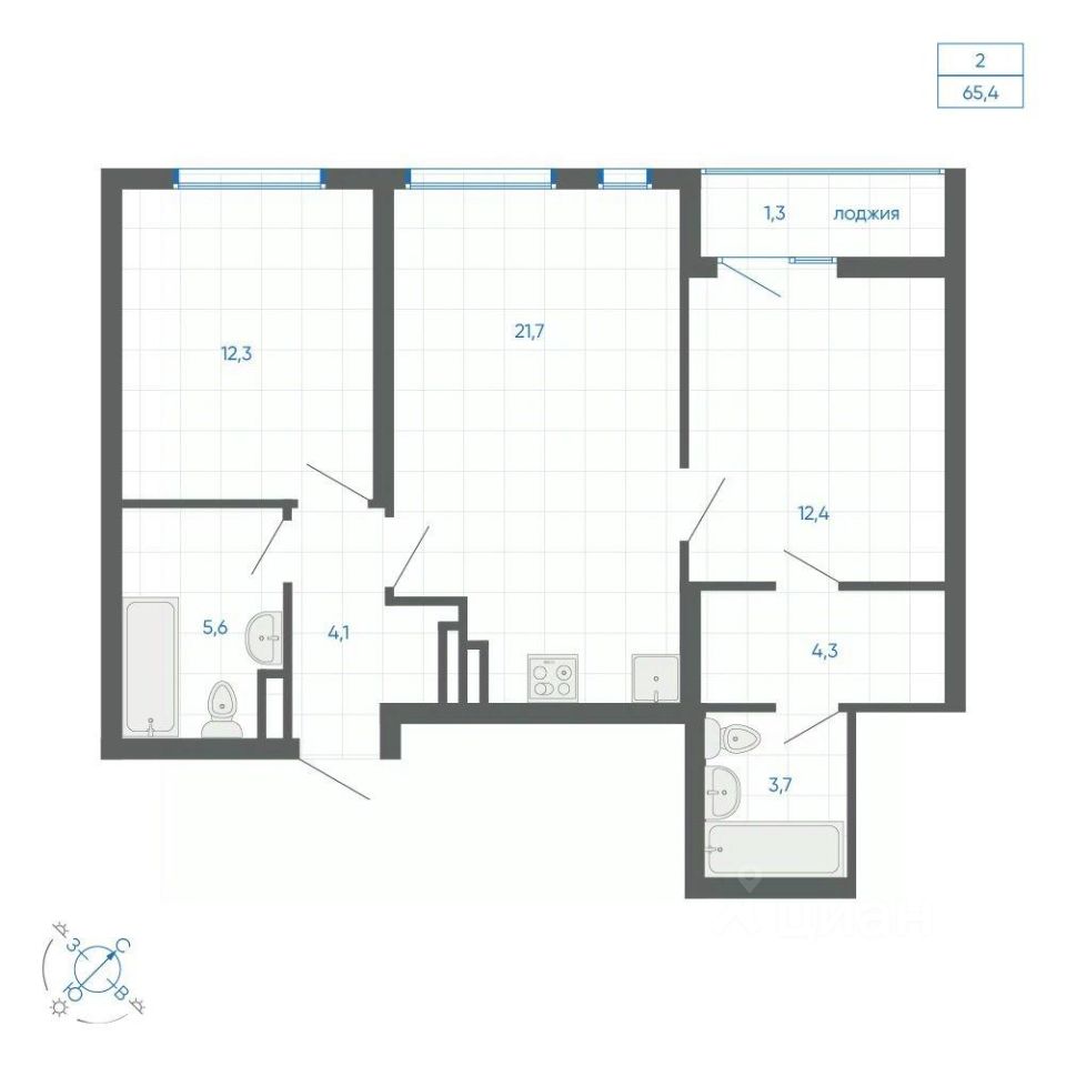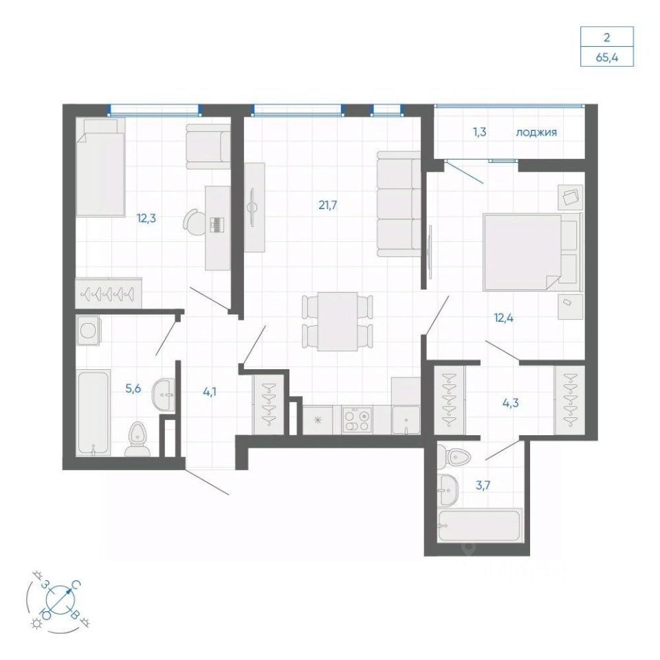 Общая площадь65,4 м²