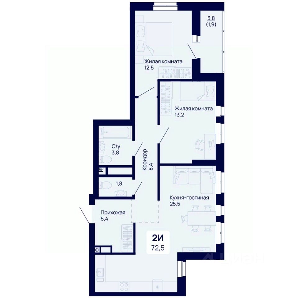 72,5 м²