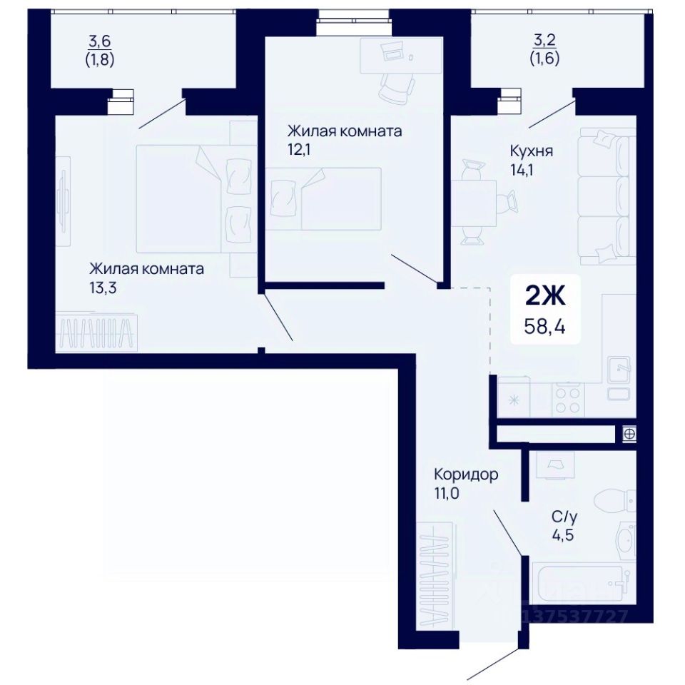 Продаётся 2-комнатная квартира в строящемся доме (Дом 1), срок сдачи: III-кв. 2026, общей площадью 58.4 кв.м., на 10 этаже. Новый жилой комплекс "Галактика" от застройщика "Ривьера-Инвест-Екб" расположен в г. Екатеринбург на ул. проспект Космонавтов.