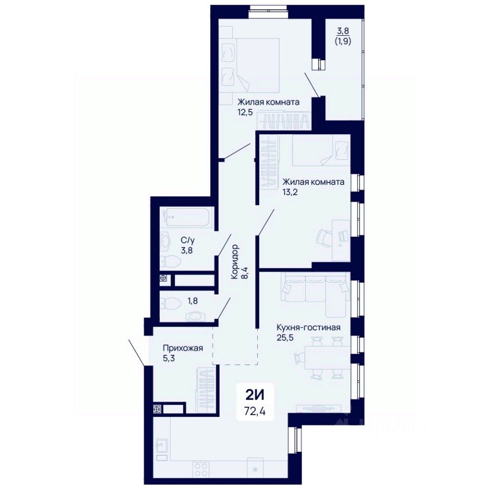Продаётся 2-комнатная квартира в строящемся доме (Дом 1), срок сдачи: III-кв. 2026, общей площадью 72.4 кв.м., на 10 этаже. Новый жилой комплекс "Галактика" от застройщика "Ривьера-Инвест-Екб" расположен в г. Екатеринбург на ул. проспект Космонавтов.