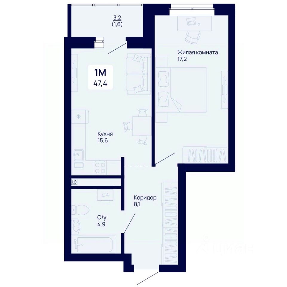 Продаётся 1-комнатная квартира в строящемся доме (Дом 1), срок сдачи: III-кв. 2026, общей площадью 47.4 кв.м., на 15 этаже. Новый жилой комплекс "Галактика" от застройщика "Ривьера-Инвест-Екб" расположен в г. Екатеринбург на ул. проспект Космонавтов.