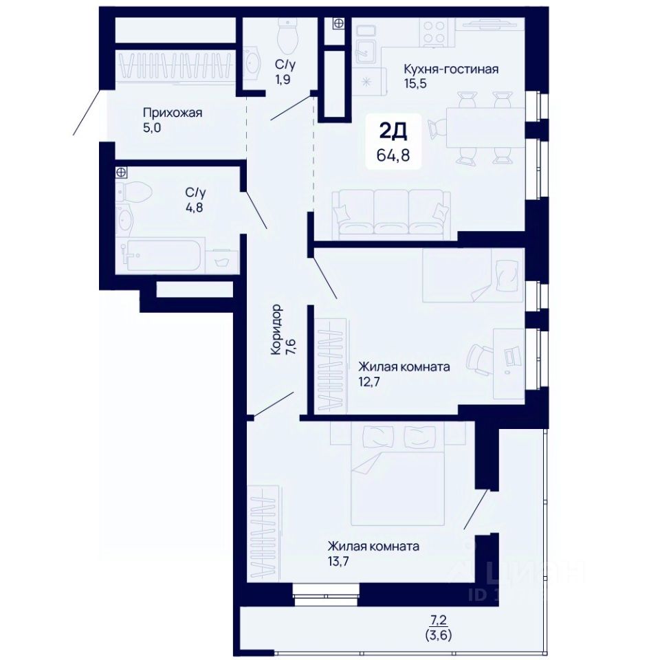 Продаётся 2-комнатная квартира в строящемся доме (Дом 1), срок сдачи: III-кв. 2026, общей площадью 64.8 кв.м., на 16 этаже. Новый жилой комплекс "Галактика" от застройщика "Ривьера-Инвест-Екб" расположен в г. Екатеринбург на ул. проспект Космонавтов.