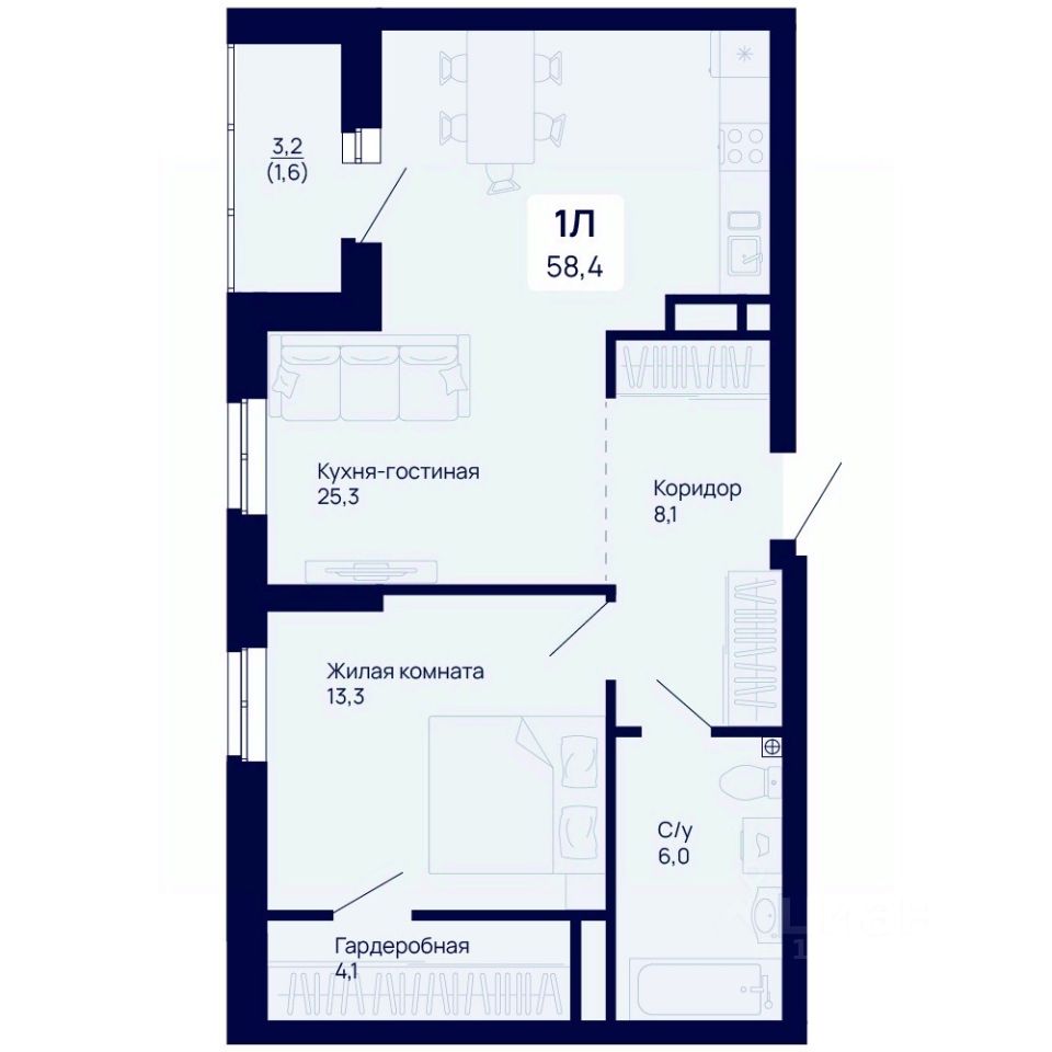 Продаётся 1-комнатная квартира в строящемся доме (Дом 1), срок сдачи: III-кв. 2026, общей площадью 58.4 кв.м., на 17 этаже. Новый жилой комплекс "Галактика" от застройщика "Ривьера-Инвест-Екб" расположен в г. Екатеринбург на ул. проспект Космонавтов.
