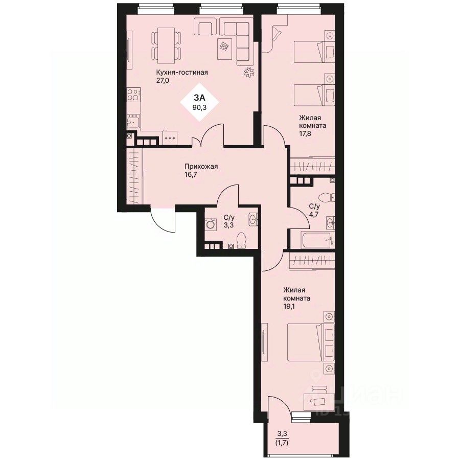 Продаётся 3-комнатная квартира в строящемся доме (Дом 5), срок сдачи: IV-кв. 2025, общей площадью 90.25 кв.м., на 4 этаже. Новый жилой комплекс "VEER PARK (Веер Парк)" от Группы компаний "Ривьера Инвест Екатеринбург" расположен в Орджоникидзевском районе Екатеринбурга на проспекте Космонавтов.