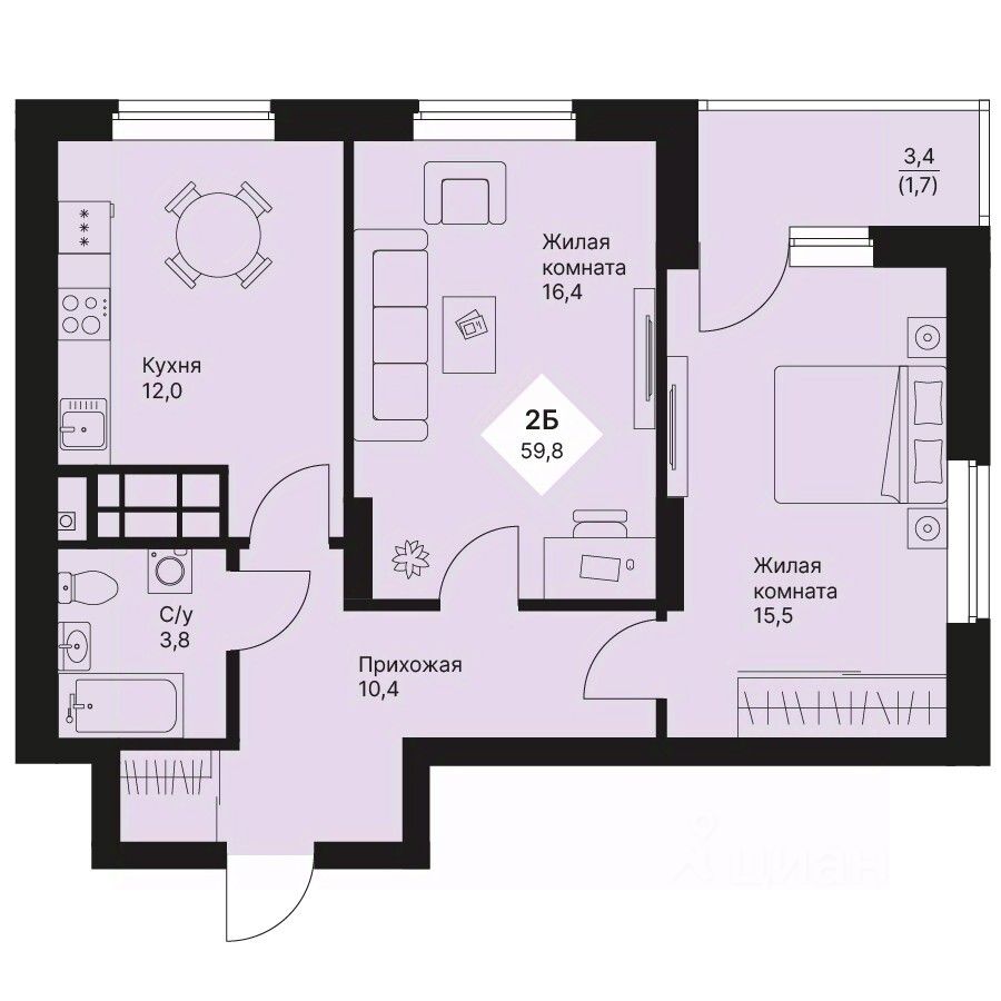 Продаётся 2-комнатная квартира в строящемся доме (Дом 5), срок сдачи: IV-кв. 2025, общей площадью 59.75 кв.м., на 15 этаже. Новый жилой комплекс "VEER PARK (Веер Парк)" от Группы компаний "Ривьера Инвест Екатеринбург" расположен в Орджоникидзевском районе Екатеринбурга на проспекте Космонавтов.