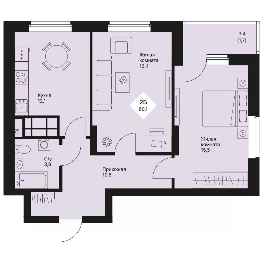 Продаётся 2-комнатная квартира в строящемся доме (Дом 5), срок сдачи: IV-кв. 2025, общей площадью 60.05 кв.м., на 16 этаже. Новый жилой комплекс "VEER PARK (Веер Парк)" от Группы компаний "Ривьера Инвест Екатеринбург" расположен в Орджоникидзевском районе Екатеринбурга на проспекте Космонавтов.