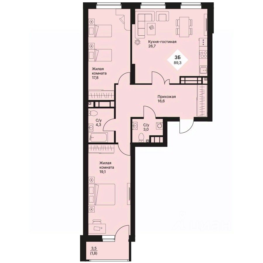 Продаётся 3-комнатная квартира в строящемся доме (Дом 5), срок сдачи: IV-кв. 2025, общей площадью 89.25 кв.м., на 17 этаже. Новый жилой комплекс "VEER PARK (Веер Парк)" от Группы компаний "Ривьера Инвест Екатеринбург" расположен в Орджоникидзевском районе Екатеринбурга на проспекте Космонавтов.