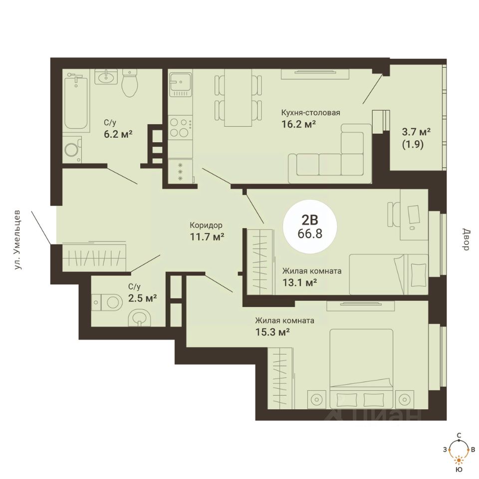 Продаётся 2-комнатная квартира в сданном доме (2-я Новосибирская, 12а (Дом 3)), срок сдачи: III-кв. 2025, общей площадью 66.8 кв.м., на 2 этаже. ЖК "Южный сад" - это квартал с пятью многоэтажными жилыми домами, благоустроенным двором, где так приятно находиться с родными и близкими. Есть все необходимое для комфортного проживания: закрытый двор с детскими площадками, колясочные, стилизованные МОПы, развитая внутренняя и внешняя инфраструктура.