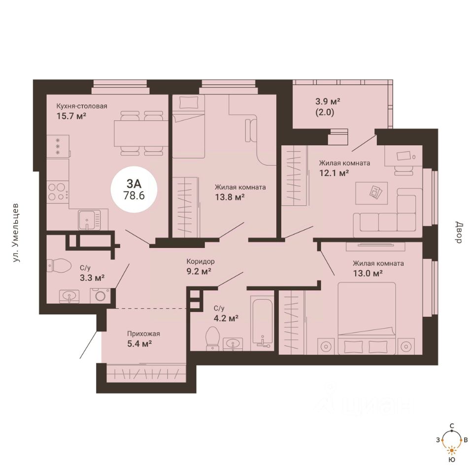Продаётся 3-комнатная квартира в сданном доме (2-я Новосибирская, 12а (Дом 3)), срок сдачи: III-кв. 2025, общей площадью 78.6 кв.м., на 7 этаже. ЖК "Южный сад" - это квартал с пятью многоэтажными жилыми домами, благоустроенным двором, где так приятно находиться с родными и близкими. Есть все необходимое для комфортного проживания: закрытый двор с детскими площадками, колясочные, стилизованные МОПы, развитая внутренняя и внешняя инфраструктура.