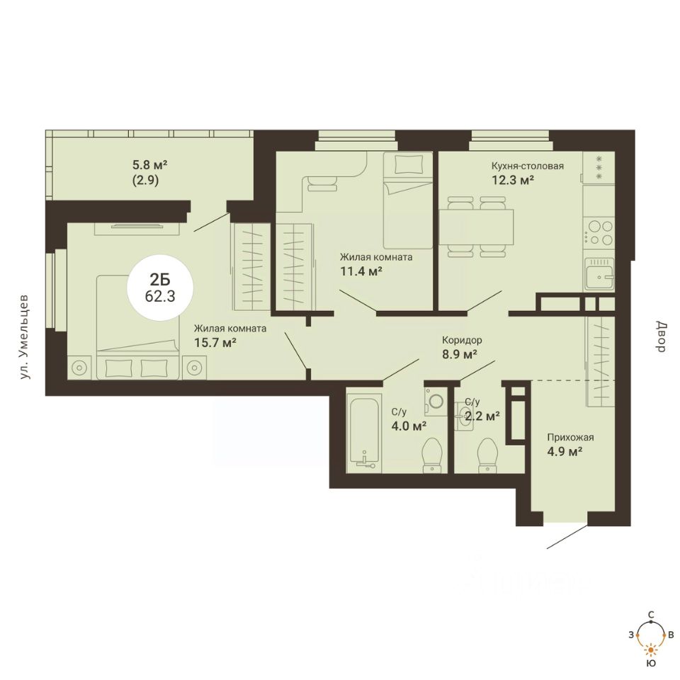 Продаётся 2-комнатная квартира в сданном доме (2-я Новосибирская, 12а (Дом 3)), срок сдачи: III-кв. 2025, общей площадью 62.3 кв.м., на 20 этаже. ЖК "Южный сад" - это квартал с пятью многоэтажными жилыми домами, благоустроенным двором, где так приятно находиться с родными и близкими. Есть все необходимое для комфортного проживания: закрытый двор с детскими площадками, колясочные, стилизованные МОПы, развитая внутренняя и внешняя инфраструктура.