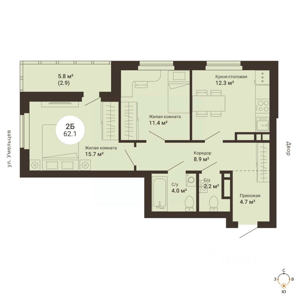 Продаётся 2-комнатная квартира в сданном доме (2-я Новосибирская, 12а (Дом 3)), срок сдачи: III-кв. 2025, общей площадью 62.1 кв.м., на 22 этаже. ЖК "Южный сад" - это квартал с пятью многоэтажными жилыми домами, благоустроенным двором, где так приятно находиться с родными и близкими. Есть все необходимое для комфортного проживания: закрытый двор с детскими площадками, колясочные, стилизованные МОПы, развитая внутренняя и внешняя инфраструктура.