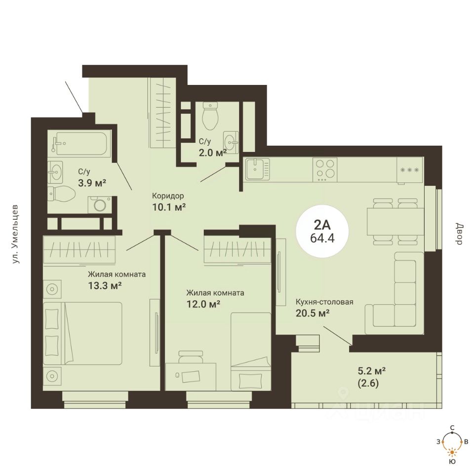 Продаётся 2-комнатная квартира в сданном доме (2-я Новосибирская, 12а (Дом 3)), срок сдачи: III-кв. 2025, общей площадью 64.4 кв.м., на 25 этаже. ЖК "Южный сад" - это квартал с пятью многоэтажными жилыми домами, благоустроенным двором, где так приятно находиться с родными и близкими. Есть все необходимое для комфортного проживания: закрытый двор с детскими площадками, колясочные, стилизованные МОПы, развитая внутренняя и внешняя инфраструктура.