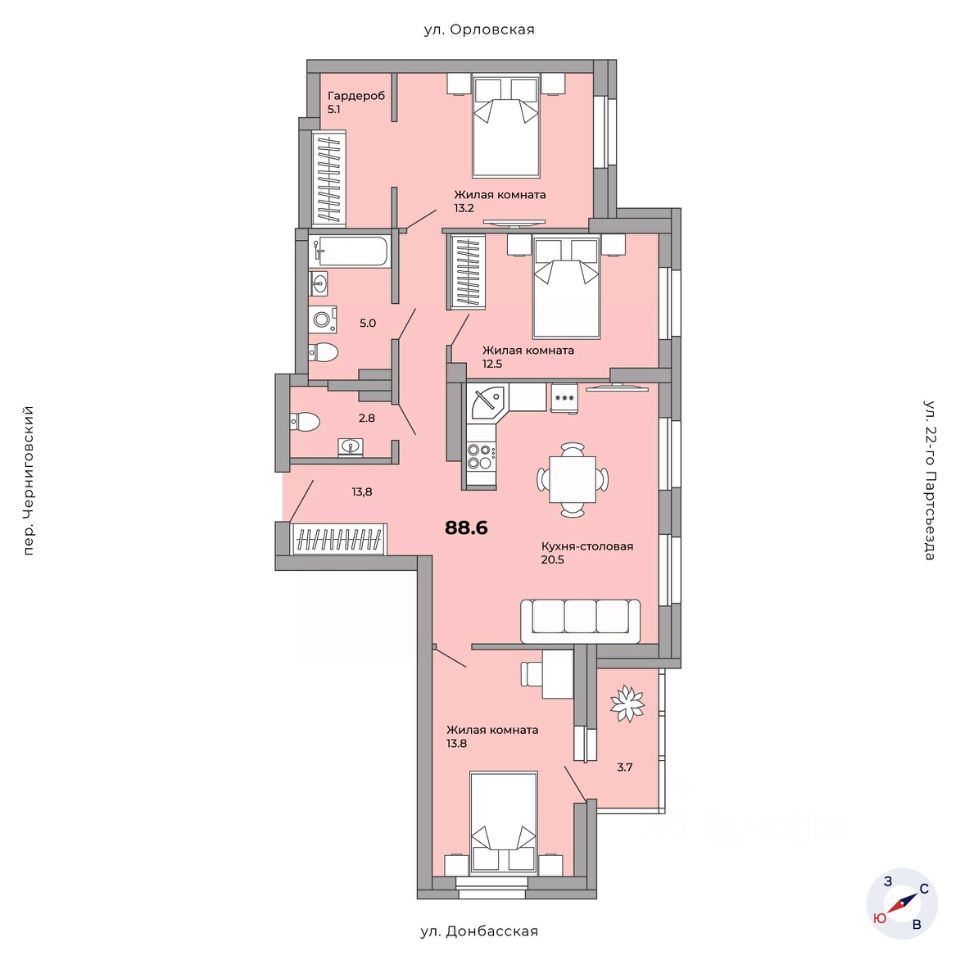 Общая площадь88,5 м²