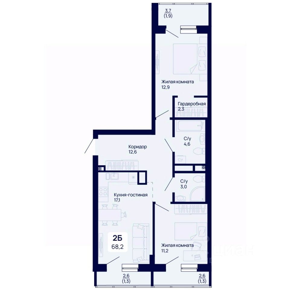 Продаётся 2-комнатная квартира в строящемся доме (Дом 1), срок сдачи: III-кв. 2026, общей площадью 68.2 кв.м., на 11 этаже. Новый жилой комплекс "Галактика" от застройщика "Ривьера-Инвест-Екб" расположен в г. Екатеринбург на ул. проспект Космонавтов.