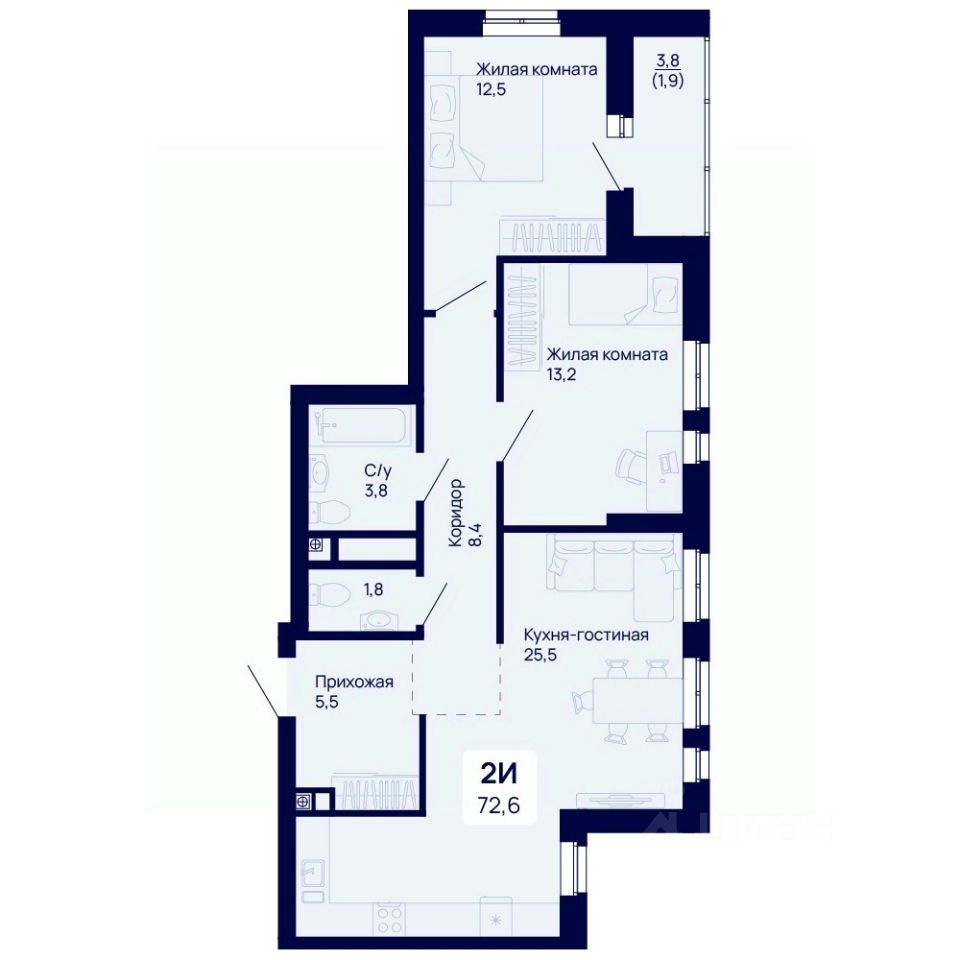Продаётся 2-комнатная квартира в строящемся доме (Дом 1), срок сдачи: III-кв. 2026, общей площадью 72.62 кв.м., на 2 этаже. Новый жилой комплекс "Галактика" от застройщика "Ривьера-Инвест-Екб" расположен в г. Екатеринбург на ул. проспект Космонавтов.