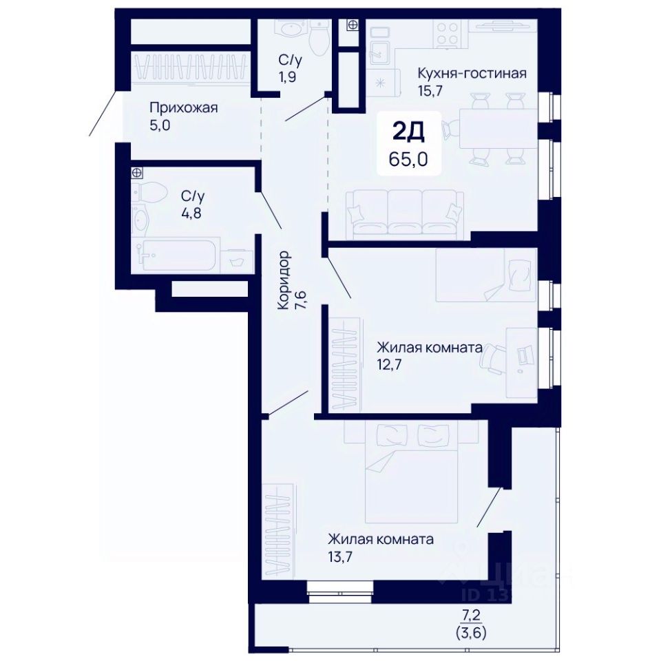 Продаётся 2-комнатная квартира в строящемся доме (Дом 1), срок сдачи: III-кв. 2026, общей площадью 65 кв.м., на 3 этаже. Новый жилой комплекс "Галактика" от застройщика "Ривьера-Инвест-Екб" расположен в г. Екатеринбург на ул. проспект Космонавтов.