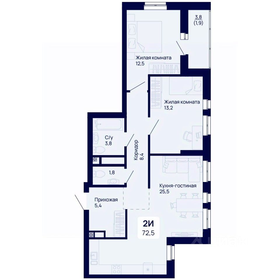 Общая площадь72,5 м²