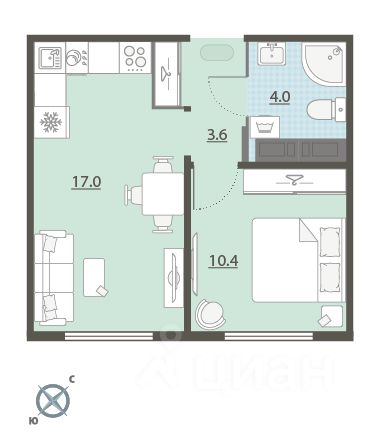 Жилая площадь 10.4 м2, кухня 17 м2, чистовая отделка. Раздельных санузлов - нет, балконов - нет, лоджий - нет.